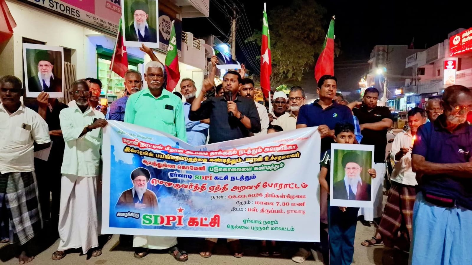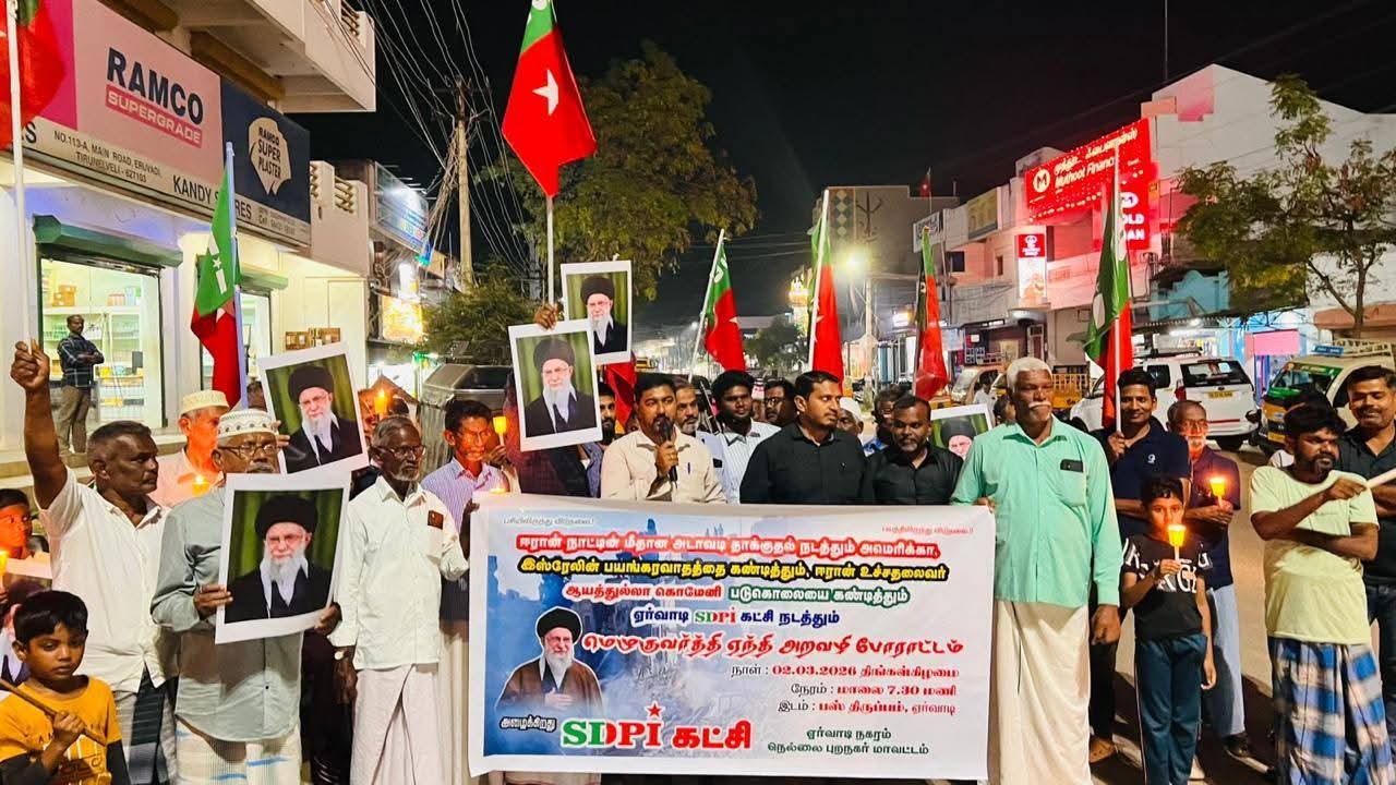 மார்ச் :02 ஏர்வாடியில் ஈரான் மீதான அமெரிக்க-இஸ்ரேலின் அடாவடி தாக்குதலை கண்டித்து எஸ்டிபிஐ கட்சி அறவழி ஆர்ப்பாட்டம்! ஈரான் நாட்டின் மீதான அமெரிக்க - இஸ்ரேலின் அடாவடி தாக்குதல் மற்றும் ஈரானின் உயர் தலைவர் ஆயத்துல்லா அலி கொமேனி உள்ளிட்ட தலைவர்கள் படுகொலையை கண்டித்தும் எஸ்டிபிஐ கட்சியின் சார்பாக ஏர்வாடியில் அறவழி ஆர்ப்பாட்டம் நாங்குநேரி சட்டமன்ற தொகுதி செயலாளர் Er. ரிஸ்வான் முன்னிலை வகித்தார். இந்த ஆர்ப்பாட்டத்தில் எஸ்டிபிஐ கட்சியின் மாநில பொதுசெயலாளர் அகமது நவவி அவரகள் கலந்து கொண்டு கண்டன உரையாற்றினார். நாங்குநேரி துணைத் தலைவர் சாம் சஹாப்தீன், நகர துணைத் தலைவர் அலி சேக் மன்சூர், நகர பொருளாளர் மைதீன் மீரான்,நகர துணைச்செயலாளர் முகைதீன், IT WING மாவட்ட தலைவர் அகமது பாத்திமா,5 வது வார்டு கவுன்சிலர் ஹலீமா மகளிர் அணி நகர தலைவர் ஹமீதா,தொகுதி, நகர, கிளை நிர்வாகிகள், மகளிர் அணி நிர்வாகிகள் பொதுமக்கள் கலந்து கொண்டு தங்களது கண்டனங்களை பதிவு செய்தனர். நிகழ்வின் இறுதியாக நகர செயலாளர் சேக் முகமது நன்றியுரையாற்றினார். இவண் ![]() ![]()