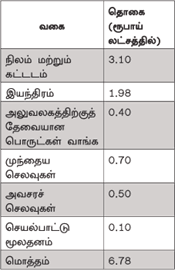 இந்த உற்பத்தி திறனுக்கான நிலத்திற்கு 60,000 ரூபாய் (தேர்ந்தெடுக்கப்படும் இடத்தைப் பொறுத்து விலை மாறுபடும்), கட்டடம் 2,50,000 ரூபாய் என மொத்தம் 3,10,000 ரூபாய் தேவை. இயந்திரத்திற்கான செலவு 1.98 லட்சம் ரூபாய்.