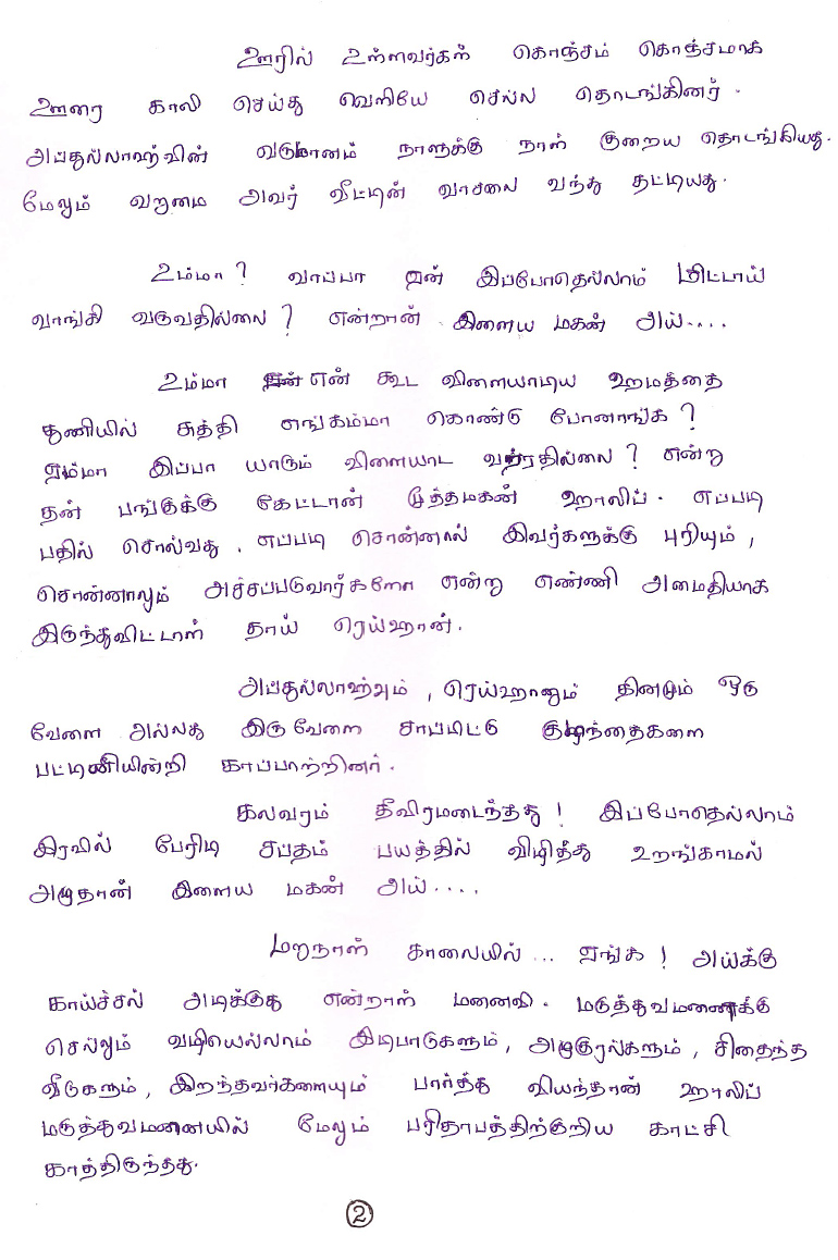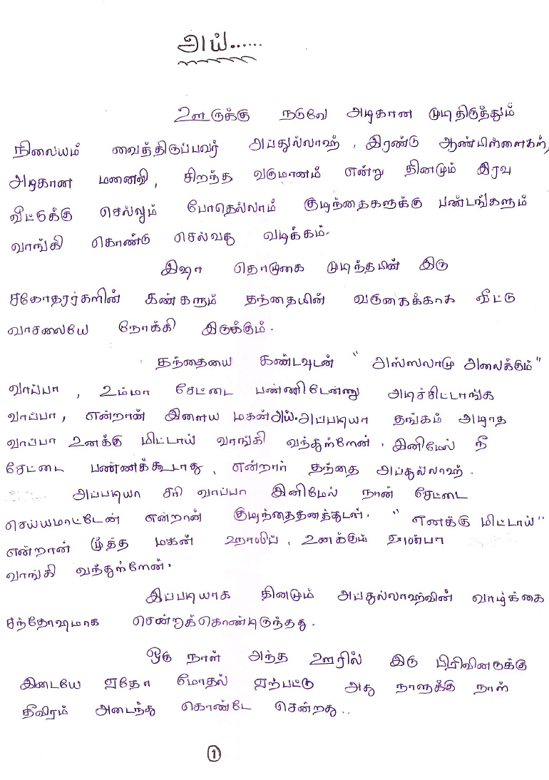 ஈமானிய மொட்டுக்கள் 2015 நிகழ்விற்காக ஈமான் அறக்கட்டளை நடத்திய சிறுகதை போட்டியில் 2 வது இடம் பெற்ற சிறுகதை, எழுதியவர் சகோதரர் தவ்பீக். மொத்தம் 65 சிறுகதைகள் இந்த போட்டியில் இடம்பெற்றது.