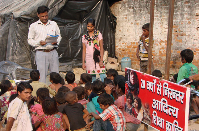 Lucknow — Every day, Aditya Kumar cycles around 40 miles with a heavy load of books and his few possessions on the back of his battered old bike to bring education to India’s slum children. The science graduate has dedicated his life to teaching in the slums of Lucknow, a sprawling city in northern India that is home to some of the country’s most deprived communities. He takes no money for his lessons, which he gives all over the city, parking his bike up wherever he is needed and staging an impromptu outdoor lesson. “These children do not know what a classroom looks like. Until I met them, they had no reason to visit a school,” Kumar told AFP during one of his lessons, gesturing to a group of rapt-looking pupils. A Right to Education Act passed in 2009 guarantees state schooling for children from six to 14 in India. But education activists say schools are often overcrowded or inaccessible, or that the quality of teaching is so poor that children simply stop going. Poverty is also a major driver, with India home to the largest number of child labourers in the world. Kumar, who does not know his exact age but thinks he is in his mid-40s, has been conducting his mobile school for around two decades, with no fixed curriculum and no standard text books. Most of his pupils are under 10 and have no education at all. He teaches them functional English and mathematics, with the aim of getting them to a standard where they can start going to a regular school. “I can relate to the lives of these kids. I know how tough life can be for want of an education,” says Kumar. As the son of a poor labourer who wanted his children in paid work as soon as they were able, Kumar had to fight to go to school. Indian teacher Aditya Kumar poses at a makeshift school in Lucknow. AFP He managed to find a place in a government-run establishment, but he ran away from home when he was a teenager because his parents insisted he stop studying and start earning his keep. For a while, he lived on the streets, before meeting a teacher who spotted his potential and helped him graduate from university in science. In return, Kumar helped his new mentor with his teaching — and found his vocation in the process. He has no teaching qualifications, however, and says he never had any ambition to become a proper school teacher. He believes he can make more of an impact on literacy through his mobile school, which he says reaches around 200 children a day. Government figures show that around 97 per cent of children of primary school age are in education, but campaigners say the true figure is far lower. Many of those who do attend classes are failing to learn the basics, according to a major, annual survey of school children in rural areas released in January. Only one quarter of children aged eight could read a text book meant for seven year olds, the survey of 570,000 students found. “Overall, the situation with basic reading continues to be extremely disheartening in India,” the survey, by Indian education research group Pratham, concluded. Kumar’s solo efforts are applauded by child rights activists, including teacher Roop Rekha Verma who said it was “no mean feat” teaching from a bike. “I am so glad that his efforts have exposed so many underprivileged children to the world of words,” the former vice-chancellor of the University of Lucknow told AFP. “And with this exposure these children now have a reason to attempt accessing newspapers and books,” she said. But she stressed much more needed to be done to help India’s millions of impoverished children facing bleak futures receive an education. To earn money, Kumar occasionally does paid tuition for private students. But mostly he lives on charitable donations, sleeping on the streets like many of his pupils. When Limca — the makers of a soft drink that publishes India’s answer to the Guinness Book of Records — wanted to honour him for his work in 2014, the certificate had to be mailed to a well-wisher as Kumar has no fixed address. “I am used to it,” he told AFP. “I have learnt the art of surviving.” Thanks: Khaleej Times http://www.khaleejtimes.com/kt-article-display-1.asp?section=todaysfeatures&xfile=/data/todaysfeatures/2015/March/todaysfeatures_March15.xml