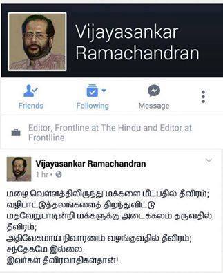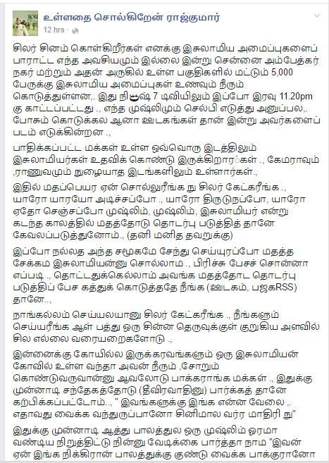 சென்னையின் வெள்ளப் பேரிடரின் போது மீட்பு பணிகளில் ஈடுபட்ட முஸ்லீம்களைப் பற்றி மாற்று மத அன்பர்களின் கருத்துக்கள். பாகம் - 2