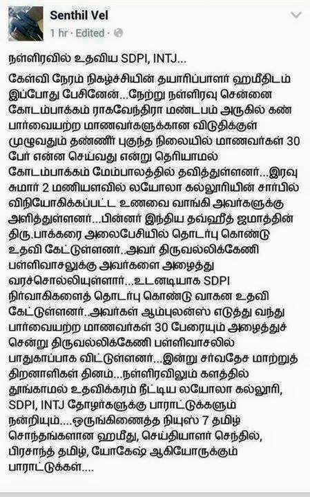 சென்னையின் வெள்ளப் பேரிடரின் போது மீட்பு பணிகளில் ஈடுபட்ட முஸ்லீம்களைப் பற்றி மாற்று மத அன்பர்களின் கருத்துக்கள். பாகம் - 3