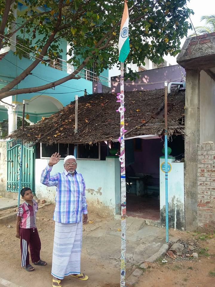 இந்தியா இந்தியர்களுக்கே!! படம்: 2016ம் வருட குடியரசு தினத்தன்று தனது வீட்டின் முன் கொடி ஏற்றிய எனது தந்தை உமர்கத்தாப் அவர்கள். தனது வாழ்நாளில் 35 வருடத்திற்கும் மேலாக தான் பணிபுரிந்த இடங்களிலும் இவ்வாறே அனைத்து சுதந்திர, குடியரசு தினங்களில் கொடி ஏற்றுவார்கள். ![]()