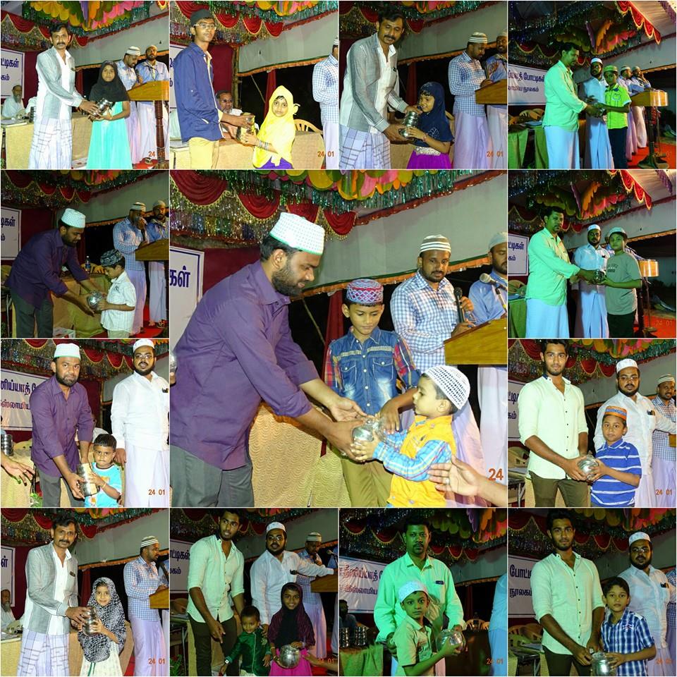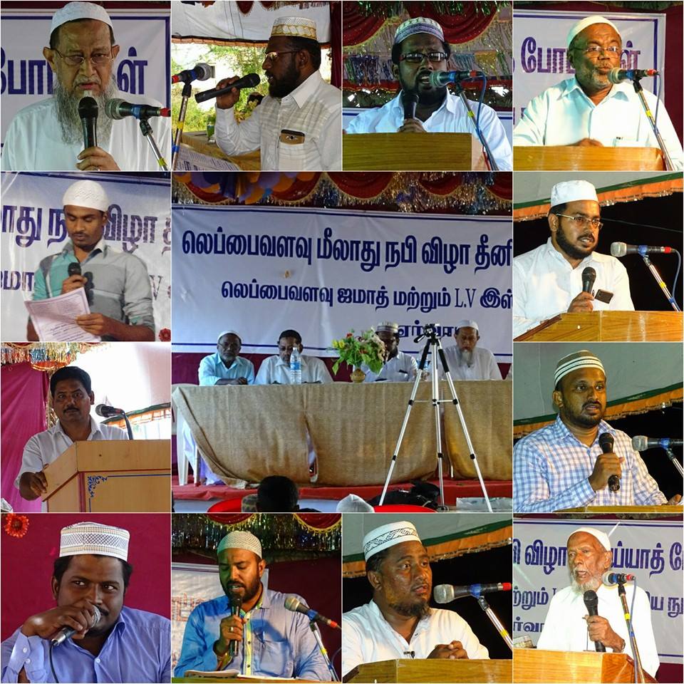 லெப்பைவளவு ஜமாத் மற்றும் L.Vஇஸ்லாமிய நூலகம் & இளைஞர்கள் இணைந்து நடத்திய மீலாது விழா நிகழ்வுகள் கடந்த ஜனவரி 23, 24/2016 ஆகிய தேதிகளில் வெகு சிறப்பாக நடைபெற்று முடிந்தது. 23/01/2016 L.V ஜமாத்தின் பொருளாளர் ஜனாப் K. ஹிதாயத்துல்லாஹ் அவர்கள் உட்பட முன்னாள் பொருப்பாளர்கள் ஜமாத் பெரியவர்கள் பலர் முன்னிலை வகித்தனர். தீனிய்யாத் போட்டிகளில் ஏர்வாடியின் அனைத்து மஹல்லா ஜமாத் மக்தப் மதரஸாக்களைச் சேர்ந்த 188 மாணவ, மாணவியர்கள் பங்குபெற்றனர். L.V இஸ்லாமிய நூலகத் தலைவர் சகோதரர் யாசரப்பா அவர்கள் நன்றி கூறினார்கள். 24/01/2014 மாலை ஏர்வாடியின் மூத்த மார்க்க அறிஞர் சென்னை பாலவாக்கம் மஸ்ஜித் மஹ்மூத் தலைமை இமாம் தீனிய்யாத் போட்டிகளில் வெற்றி பெற்றவர்களுக்கும், இறுதியாக லெப்பைவளவு பைத்துல்மால் செயலாலர் சகோதரர் S. சாமு சஹாபுதீன் நன்றி கூறினார். நிகழ்ச்சிகளில் லெப்பைவளவு ஜமாத்தார்கள் உட்பட அனைத்து ஜமாத்தினரும் திரளாக கலந்து கொண்டனர். நிகழ்ச்சிக்காக L.V ஜமாத் பெரியவர்களும், இளைஞர்களும் ஒன்றுபட்டு சிறப்பாக செயலாற்றினார்கள். அல்லாஹ் அனைவருக்கும் நற்கூலி வழங்கிடுவானாக! - Nellai Eruvadi Sunnath Jamath