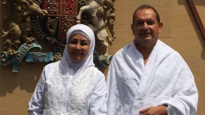 Simon Collis made the holy trip - which it is a duty for all able-bodied Muslims to make at least once in their life - with his wife Huda Mujarkech. The 60-year-old is the first UK ambassador to perform Hajj. Mr Collins has been pictured wearing the white robes traditionally worn for the pilgrimage which re-enacts the actions of the Prophet Muhammad. The photograph was posted on the twitter account of Saudi Arabian writer and female activist Fawziah Albakr, who wrote in Arabic: "First British ambassador to the Kingdom undertakes the Hajj following his conversion to Islam. Simon Collis with his wife Huda in Mecca. Praise be to God." Among the Twitter users to offer congratulations Saudi Arabia's Princess Basmah bint Saud, who wrote: "Special congratulations to the ambassador and his wife." Mr Collis took to Twitter to thank well-wishers and revealed he had converted to Islam shortly before marrying his wife. He wrote: "In short, I converted to Islam after spending 30 years in Muslim societies and before getting married to Huda." The British diplomat has served as the ambassador to Saudi Arabia since 2015. He has held several posts with the Foreign Office, including as ambassador to Iraq, Syria and Qatar Source: http://www.bbc.com/news/world-37371868?ref=yfp