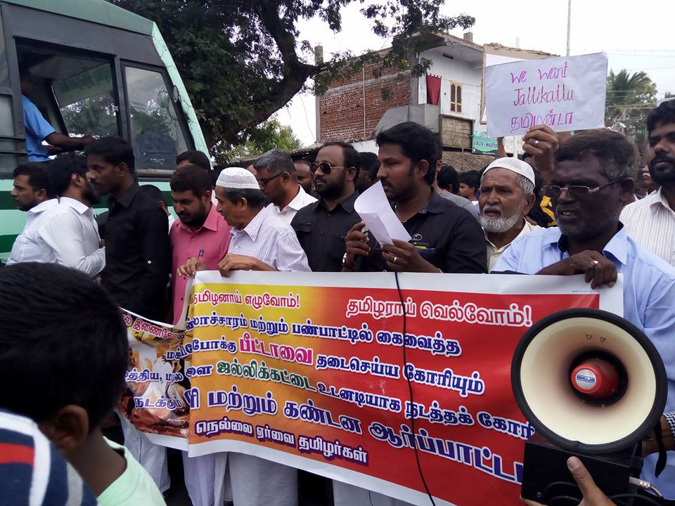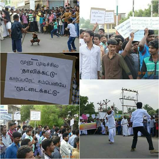 தமிழர்களின் வீர விளையாட்டான ஏறு தழுவுதல் ஆதரவு போராட்டம் ஏர்வாடியின் அனைத்து சமூக மக்களின் எழுச்சியோடும் சிறப்பாக நடைபெற்றது. பேரணியின் போது ஏர்வாடி சிறுவர்களும், இளைஞர்களும் சுழன்றடித்த வீரத் தமிழ் சிலம்பாட்டம், கையாளாகாத மாநில அரசுக்கும், இது ஒரு இனத்தின் பாரம்பரிய பண்பாட்டுக்கான போராட்டம். தமிழால் இணைவோம்! சல்லிக்கட்டு போராட்டம் வெல்லட்டும்! புகைப்படங்கள்: