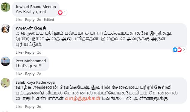 வெங்கடேஷ் யின் பதில் பாய் ஒரு பத்து நிமிஷம் பொருங்க என்ற பதில்...