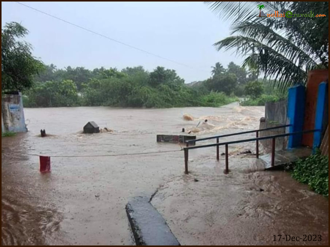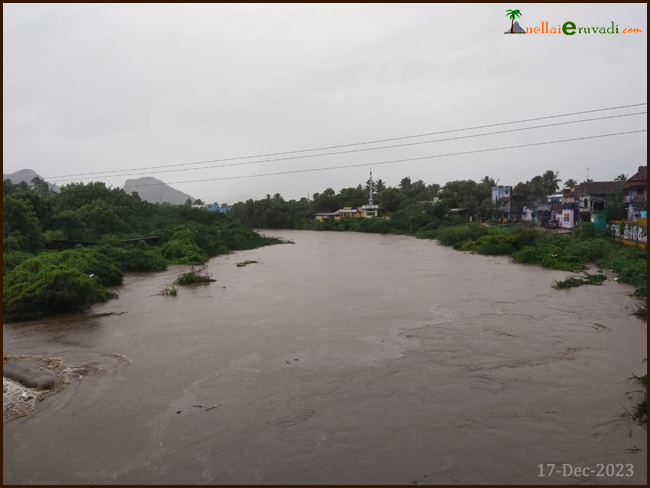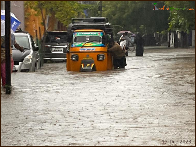 ஏர்வாடியில் இன்று (17-12-2023) வரலாறு காணாத அளவுக்கு கனமழை கொட்டித் தீர்த்து வருகிறது. கனமழை காரணமாக ஏர்வாடி பகுதியில் சாலைகளில் மழை வெள்ளம் ஆறு போல் ஓடுகிறது. தொடர் மழை காரணமக வீடுகள், கடைகளுக்குள் வெள்ளம் புகுந்தது. நம்பியாற்றில் வெள்ளப் பெருக்கும் ஏற்பட்டுள்ளது.