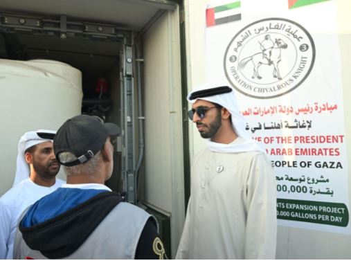 6 stations can pump 1,200,000 gallons of water per day to the Strip, benefiting over 600,000 people Published: Mon 1 Jan 2024, 2:18 AM Last updated: Mon 1 Jan 2024, 9:39 PM UAE, on Sunday, officially opened the water desalination plants set up by the authorities in the Egyptian city of Rafah to pump drinking water to the residents of the Gaza Strip. In implementation to the directives of the UAE President, His Highness Sheikh Mohamed bin Zayed Al Nahyan, Sheikh Shakhboot bin Nahyan bin Mubarak Al Nahyan, Minister of State, on Sunday, opened the water desalination plants. The UAE has established six stations with a total capacity of 1,200,000 gallons per day to pump water to the Gaza Strip, benefiting over 600,000 people. The stations were completed in less than three weeks. The establishment of desalination plants comes within the humanitarian operation 'Gallant Knight 3' that was ordered by Sheikh Mohamed bin Zayed to provide relief to the fraternal people of Palestine in the Gaza Strip, reflecting the UAE's historical stances that support the Palestinians, and standing by their side during the difficult circumstances they face. Sheikh Shakhboot emphasised that the UAE continues its humanitarian endeavours in supporting the Palestinians and assisting them to overcome these difficult circumstances, especially children and women, indicating that the establishment of these stations aims to ensure the provision of clean and sustainable potable water to the Palestinian people in the Gaza Strip. Sheikh Shakhboot was accompanied by a delegation that included senior officials from various official agencies and humanitarian organisations in the country, in addition to a number of members of the Federal National Council. The successful water pumping process into the Gaza Strip addresses the scarcity of clean water for the population, providing necessary daily drinking water to shelter centres.