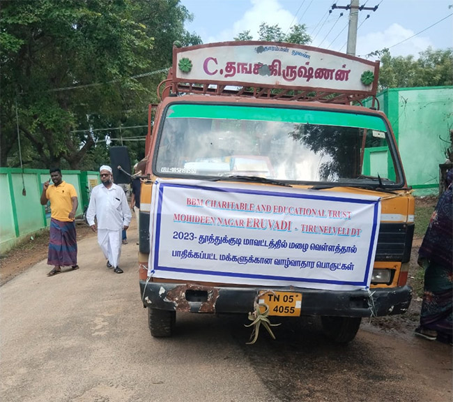 2023 டிசம்பர் கனமழையால் பாதிக்கப்பட்ட தூத்துக்குடி மாவட்ட கேம்லாபாத் மற்றும் வடக்கு ஆத்தூர் பகுதிகளுக்கு கடந்த 29-12-2023 அன்று நமது நிர்வாகக் குழு நேரில் சென்று பார்வையிட்டு அங்குள்ள மக்களின் வாழ்வாதார தேவைகளை கண்டறிந்து வந்தோம். அதன் தொடர்ச்சியாக 06-01-24 அன்று 15 குடும்பங்களுக்கு அவர்களது வாழ்வாதாரத்திற்கு தேவையான பொருட்களுடன் ( தோசை மாவு,இடியாப்ப மாவு தொழில் செய்து வந்தவர்களுக்கு மொத்தம் 7 கிரைண்டர்கள்,தையல் தொழில் செய்து வந்தவருக்கு தையல் மெஷின்,ஏர்கண்டிசன் தொழில் செய்தவர்களுக்கு அதற்கான உபகரணங்கள்,முற்றிலும் வீடு சேதமடைந்த 3 குடும்பங்களுக்கு வீட்டிற்கு தேவையான அத்தியாவசிய பொருட்கள் என மொத்தம் 157495/- மதிப்பிலான பொருட்கள் பயனாளர்களுக்கு வழங்கப்பட்டது. அல்ஹம்துலில்லாஹ்.