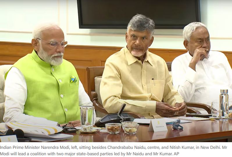 இந்தியாவின் அரசியல் நிலப்பரப்பில் ஏற்பட்ட வியத்தகு மாற்றத்தையும், கருத்துக் கணிப்புகளுக்கும் நில உண்மைகளுக்கும் இடையே உள்ள முரண்பாட்டை எடுத்துக்காட்டும் வகையில், BJP க்கு "அதிர்ச்சிகரமான தேர்தல் பின்னடைவுக்கு" பிறகு கூட்டாளிகளால் மோடியின் தலைவிதியை வடிவமைத்ததாக அல்ஜசீரா விவரித்தது. இது அயோத்தியில் பாஜகவின் எதிர்பாராத தோல்வியை வெளிச்சம் போட்டுக் காட்டியது.