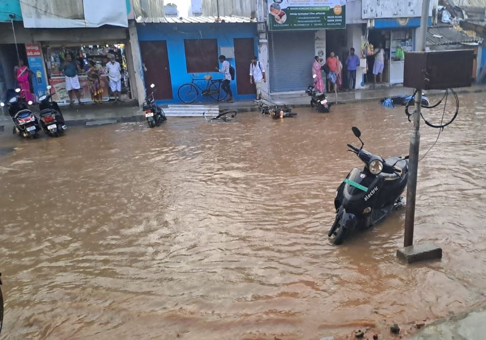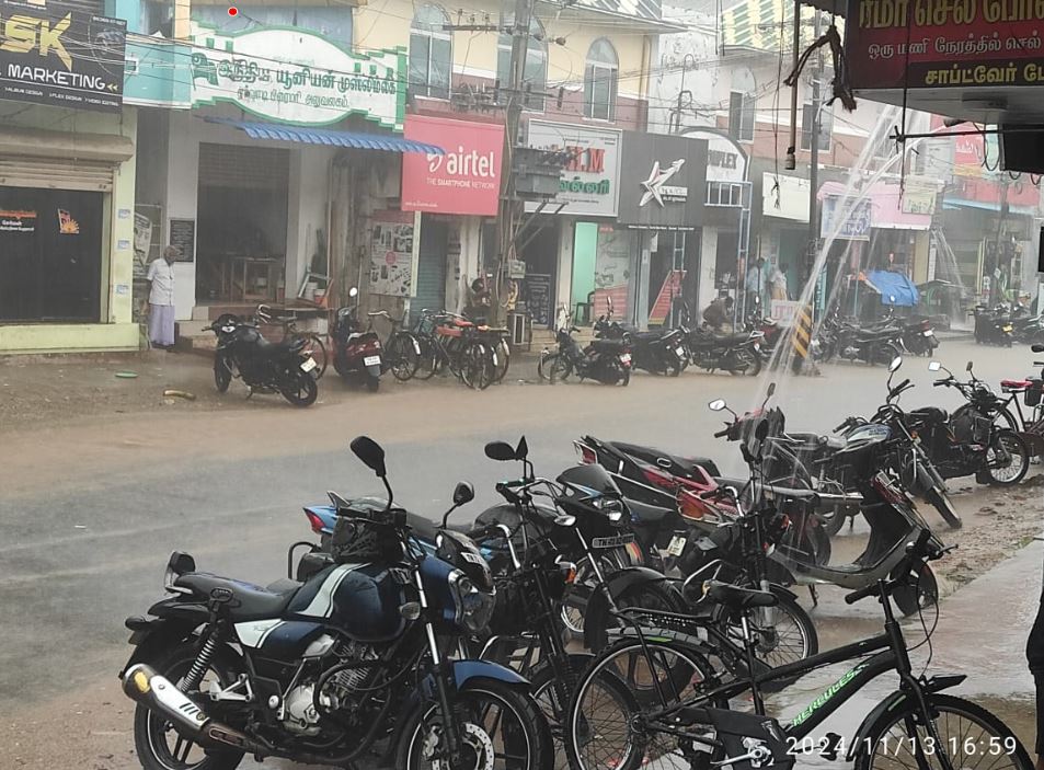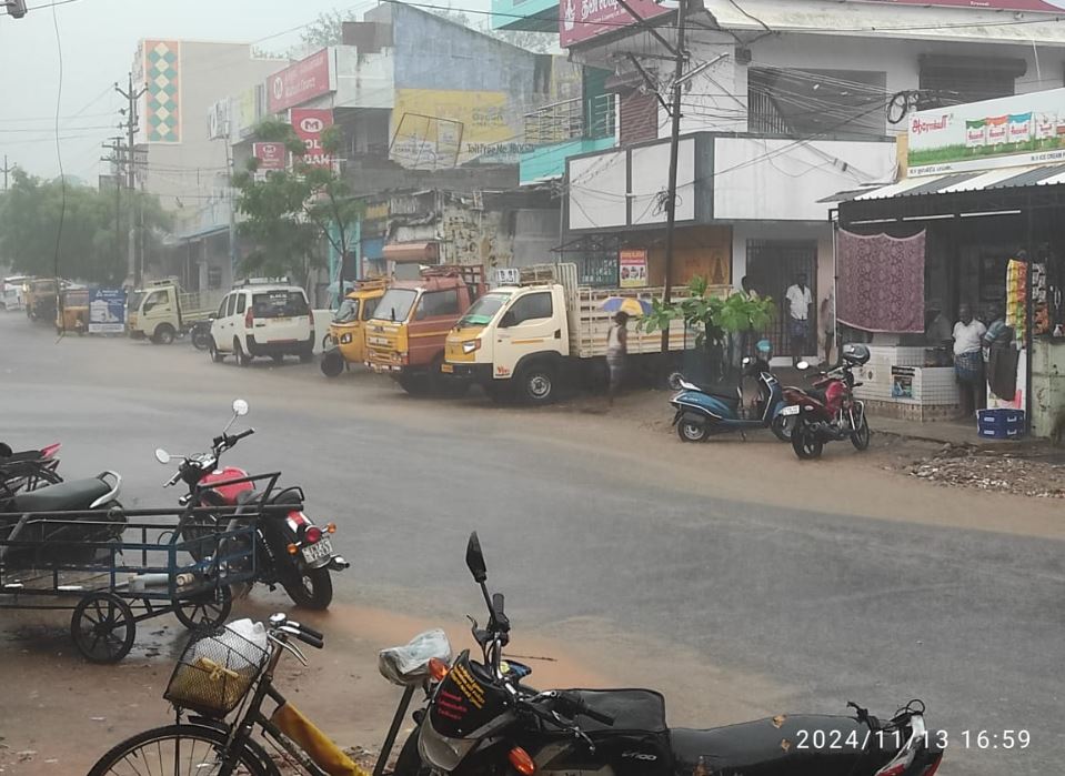 ஏர்வாடியில் இன்று (13-11-2024) பெய்த கனத்த மழை காரணமாக சாலையில் வெள்ளம் பெருக்கெடுத்து ஓடியது